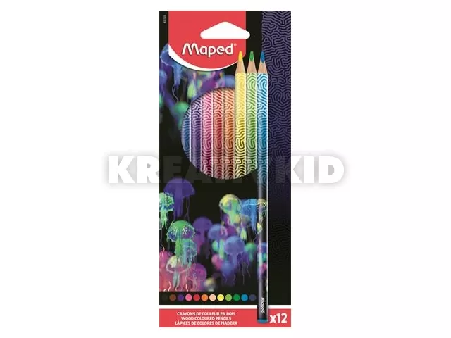 Színes ceruza készlet, háromszögletű, MAPED "Deepsea Paradise", 12 különböző szín