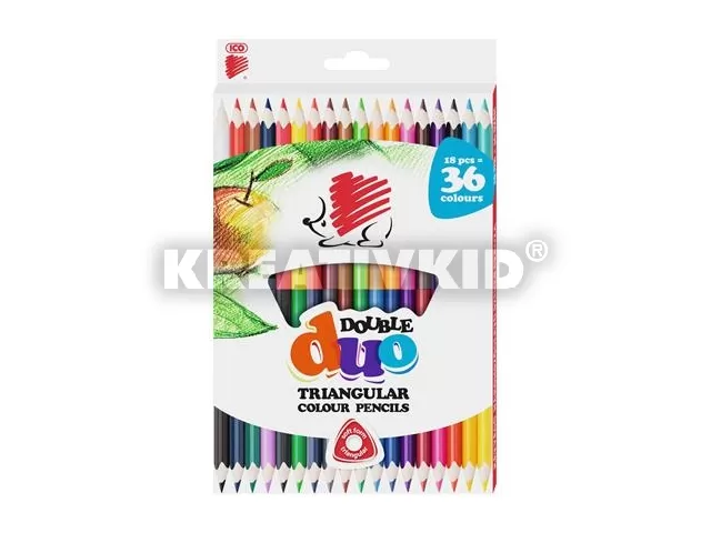 Színes ceruza készlet, kétvégű, háromszögletű, ICO "Süni", 36 különböző szín
