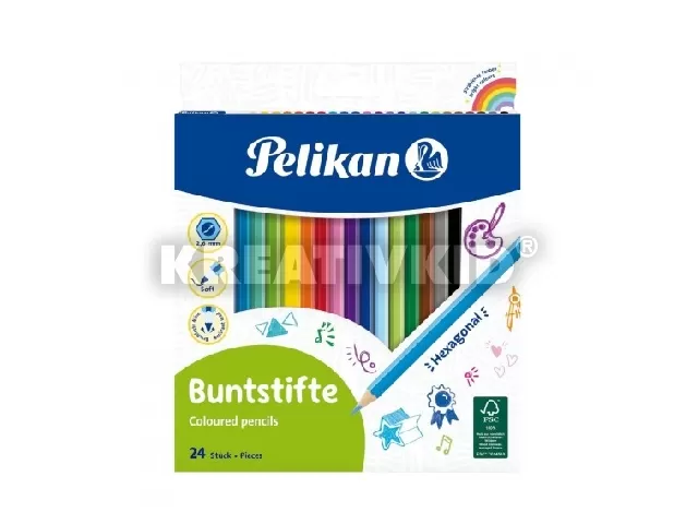 Kiváló minőségű színes ceruza, hatszögletű lakkozott fatest, lágy színek, 17,5 cm-es ceruzahossz.