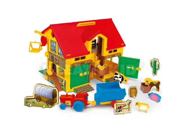 Farm játék 2 szinten valódi funkciókkal. Rengeteg kiegészítővel, kisállatokkal, nyitható-zárható ajtókkal, működő külső emelődaruval.