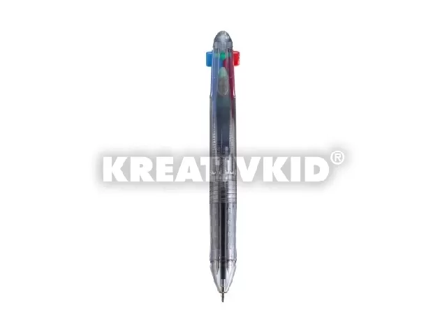4-színű golyóstoll, átlátszó műanyag tolltesttel, nem cserélhető betétekkel, 4 írásszínnel: kék, piros, fekete, zöld. Vonalvastagság: 1 mm. Bliszteres kiszerelésben.