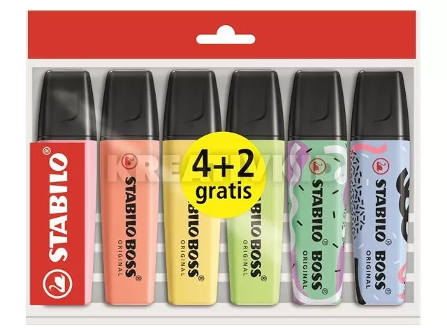 Szövegkiemelő készlet, 2-5 mm, STABILO "Boss Original", 4+2 különböző pasztell szín