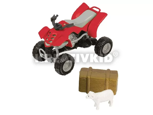 A műanyagból és fémből készült Farm quad kis méretű járgány egy birka és egy bála figurával együtt kapható. A helyes készlet a fiúknak szól, amellyel szerepjátékokat játszhatnak.