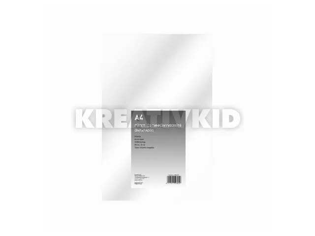 A4-es méretű, teljes felületén öntapadós füzet- és tankönyvborító, 50x30 cm-es méretben, víztiszta, 65 mikronos PP alapanyagból, 10 db/csomag.