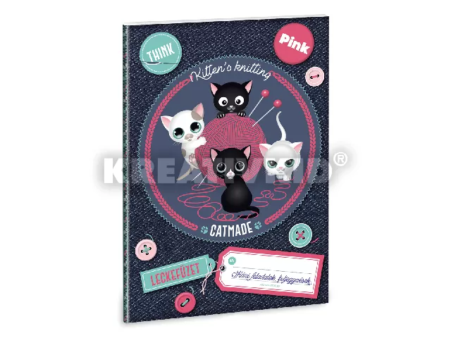 farmerkék és rózsaszín színvilágú füzet bájos cicás