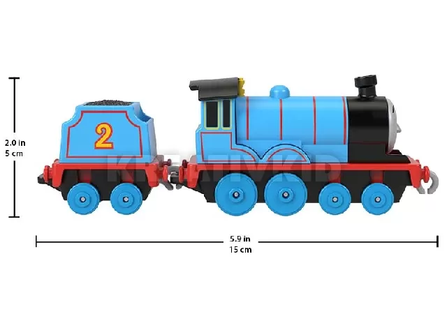 Thomas és barátai mindig készen állnak egy kis pöfögésre. Ahogy ezek a mozdonyok és kocsik is készen állnak a tologató kezekre – bárhová is gurítsák őket. Persze a legjobban a (külön kapható) TrackMaster pályákon érzik magukat, ahol csatlakozóikkal bármelyik másik mozdonnyal vagy vagonnal összeköthetők. Minden kész? Akkor már csak a kövér ellenőr utasítására várunk. A mozdony fém és műanyag felhasználásával készült.