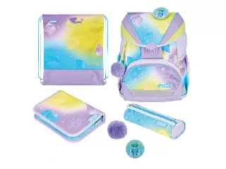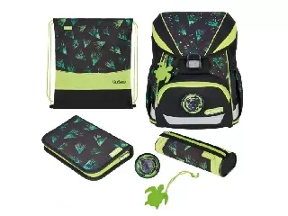 1 db 3 rekeszes tolltartó, 18 filctoll, 18 színes ceruza, radír, vonalzó, hegyező, 4 színű golyóstoll, grafit ceruza, olló, ragasztó, jegyzetlapok.