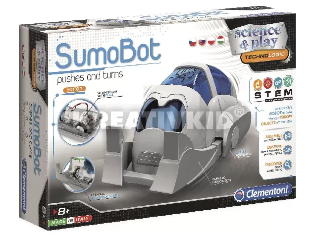 A Clementoni robotfigurái közül talán a SumoBot a legizgalmasabb, ugyanis olyan érzékelőkkel van ellátva, amelyekkel képes felismerni a felületet ahová letették és úgy tud közlekedni rajta, hogy nem esik le róla. A robot összeépítése már önmagában egy izgalmas feladat, amely közben a mellékelt illusztrált használati útmutatóból gyermeked sokat tanulhat a robotika jövőjéről és a benne rejlő lehetőségekről. A csomagolás tartalmazza a SumoBot-hoz szükséges összes alkatrészt!