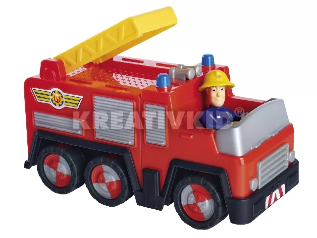 Nyitott csomagolás, a csomagolás mérete 9 x18,5 x 19 cm, a készletben Fireman Sam mozgó figurája, 7 cm, a jármű mérete 17 cm.