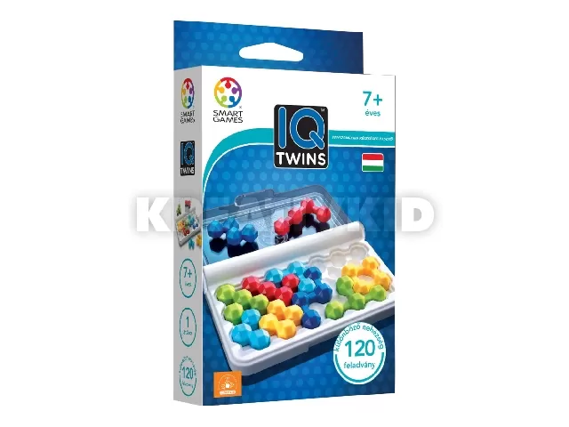 Az IQ Twins -ben a játékosok 10 kirakódarabot – 5 pár azonos színűt – helyeznek el a játéktáblán. De vigyázz! Az ikrek nem egyformák. Az egyiket csak 90°-os szögben tudod elhelyezni a táblán, a másikat csak 45°-kal elforgatva.