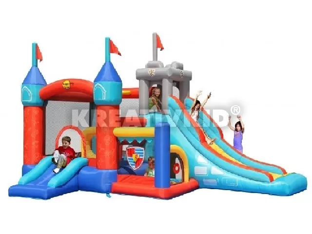 játék tartalmazza a felfújható ugrálóvárat és a kompresszort.