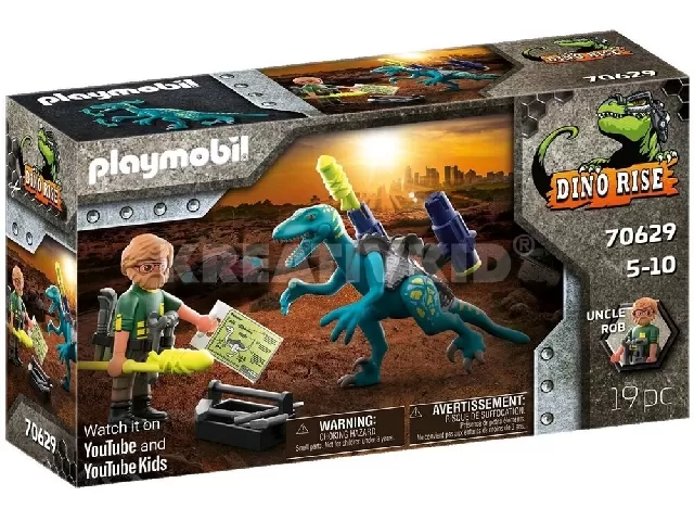 Rob bácsi a Dino Rise csapatban. Okos ötleteinek köszönhetően a hősök menő harci felszereléssel szerelhették fel dínóikat, hogy kiálljanak a harci robotokkal. A kiegészítő modulokkal a dínók nem csak jobban védettek, de támadásban is erősebbek és lőfegyverrel védekezhetnek a túlerőben lévő robotok ellen. A leleményes hős mellett egy hűséges Deinonychus áll. Természetesen Rob bácsi extra erős páncélt és ágyútartót is tervezett dínó társának. Ők ketten verhetetlen csapatot alkotnak.