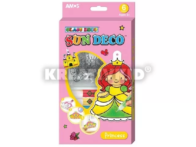 Dekoráld ki a szobádat fényáteresztő hercegnős képekkel! A Glass Deco hercegnős üvegfesték készlet átlátszó sablonokat és színes üvegfestékeket tartalmaz, amikkel különleges díszeket tudsz megalkotni. Csak színezd ki a műanyag lapokat, majd hagyd őket kb. 8 órán keresztül száradni. Ha elkészült, akaszd a színes lapokat az ablakhoz, a bejövő napfény gyönyörű színekkel fogja beborítani a szobádat! A Glass Deco hercegnős üvegfesték készlet tartalma: 6 darab sablon, 6 tubus 10,5 ml-es üvegfesték. Csomagolás méretei: 14 x 3 x 26 cm.