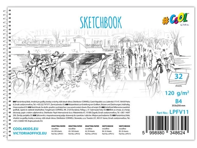 Vázlatfüzet, félfamentes, B4, spirál, 32 lap, COOL BY VICTORIA