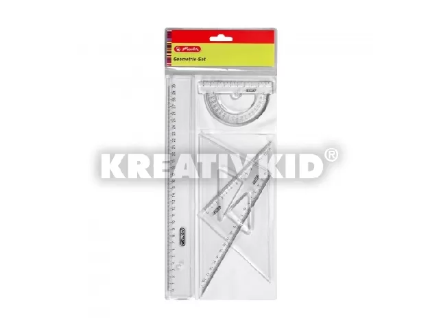 Vonalzó-szett műanyag, 4 részes: 1 db 30 cm-es vonalzó, 1 db szögmérő, 1 db 60 fokos és 1 db 45 fokos háromszög vonalzó.