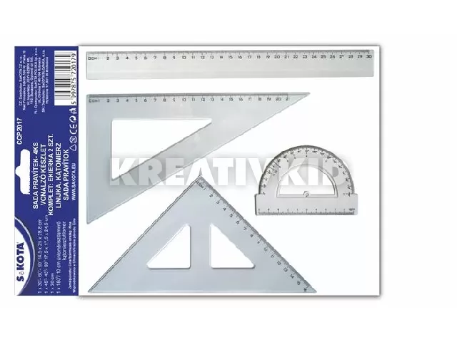 Vonalzókészlet, műanyag, 4 darabos, SAKOTA