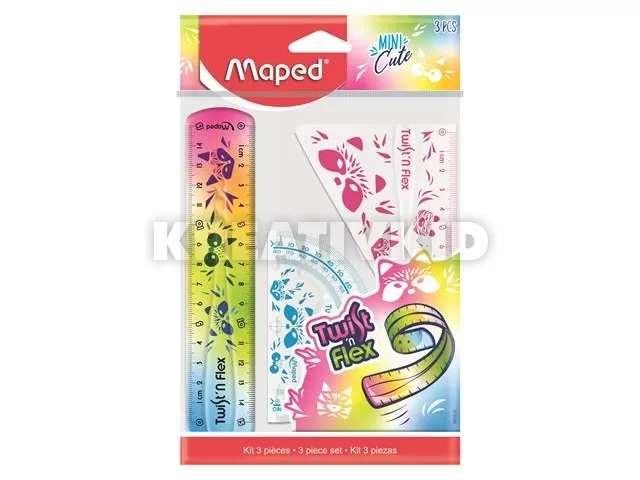 Vonalzókészlet, műanyag, törhetetlen, 3 darabos, MAPED "Mini Cute Twist `n Flex"
