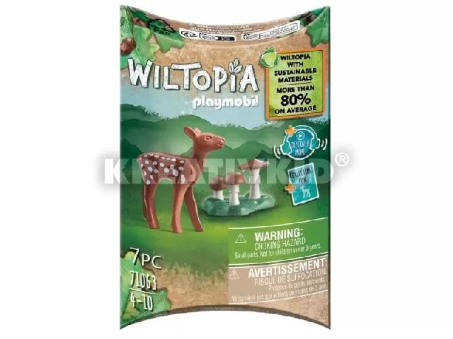 Playmobil Wiltopia Kis őzike játékszett. A csomag kiegészítőket, állatismereti gyűjtőkártyát, izgalmas, QR kóddal megnyitható hanganyagot és állati rejtvényeket is tartalmaz. A szett összesen 7 elemből áll. Csomagolás mérete: 8 x 12,5 x 3 cm