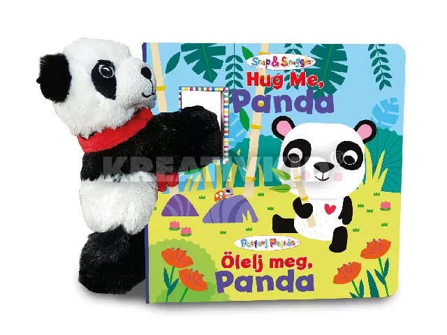 Keménylapos mesekönyv puha borítóval, kedves és rövid mesével angol és magyar nyelven. A kicsiknek való mesekönyvet egy plüss pandamaci öleli, melyet a tépőzárnak köszönhetően egy mozdulattal a gyermek kezére tehetünk.