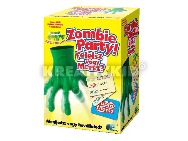 A Felelsz vagy mersz? egy olyan játék, ami szinte minden házibulin előkerül. A Zombie Party azzal spékeli meg a jól ismert játékmenetet, hogy minden körben egy elemmel működő zombi kéz mutat rá arra, akinek választania kell: egy kérdésre válaszol, vagy elég bátor lesz teljesíteni a kihívást. A csomagban található kártyákon olyan kérdések szerepelnek, mint hogy hányszor színlelte magát betegnek a játékos, hogy szabadnapot kapjon az iskolából vagy a munkából. A kihívások között pedig olyanokat találunk, mint egy balett tánc előadása meghatározott időtartamon belül. Ha a játékos nem teljesíti a feladatot, „fizetnie" kell egy újabb feladattal, amelyek között akár mozgásos vagy műveltségi kérdések is lehetnek. Az a játékos lesz a győztes, aki először teljesít 6 feladatot.