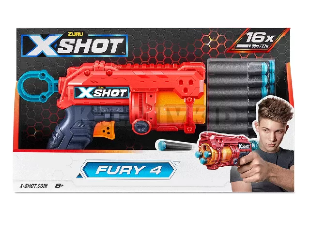 Megérkezett az X-Shot új generációs kézi fegyvere, a forgótáras Fury! Egyszerre 4 lövedéket tárazhatsz be, húzd meg a ravaszt, és a következő töltény már készen is áll a kilövésre! Az X-Shot játékfegyverek extrém lövőerővel és hajszálpontos lövésekkel biztosítják a tökéletes játékélményt.Tedd próbára! Az X-Shot Fury szett tartalma: