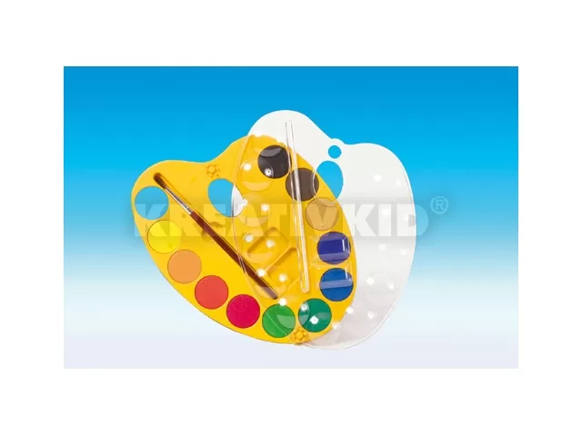 Fess palettáról, úgy mint a nagyok. A tizenkét szín kedved szerint keverhető. A palettát kényelmesen kézbe foghatod, de ha leteszed, és inkább asztalról festesz akkor, a közepén található mélyedést víztárolóként is használhatod. A 12 db vízfesték palettán csomagban ecsetet is találsz, a festést akár azonnal el is kezdheted.