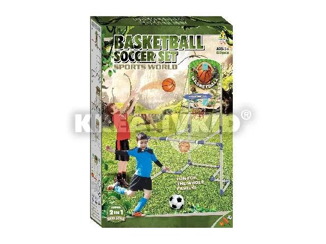 2IN1 focikapu és kosárpalánk 12 cm kosárlabdával, 14 cm focilabdával, pumpáva