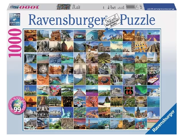 1000 db-os Ravensburger puzzle 99 db apró képpel a világ lenyűgöző látnivalóiról a Regio puzzle-kínálatából.