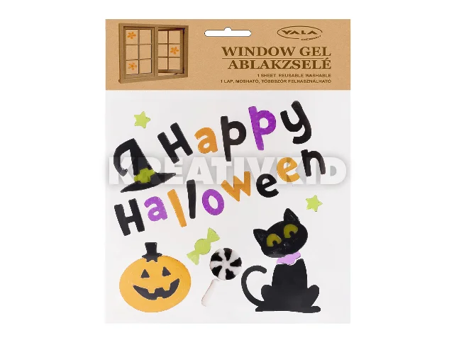 Happy Halloween feliratú ablakzselé szett. Csomagolás mérete: 20 x 20 cm