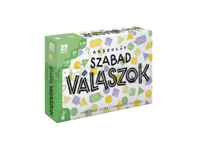 Üljetek körbe, helyezzétek magatokat kényelembe, mert most csak egymásra és magatokra kell figyelnetek! Az Abszolút szabad válaszok kártyapaklija több mint száz érdekes, vicces, elgondolkodtató kérdést rejt, amelyek segítenek eltöprengeni fontos témákon, azon, hogy mivé változnátok át, ha tehetnétek, mi jut eszetekbe arról, hogy susmus, vagy éppen ki tud közületek a legkevésbé füllenteni! A válaszok közt időnként pedig közös és egyéni küldetések, mókás csoportfeladatok bukkannak fel. A játéknak nincs győztese vagy vesztese, a lényeg, hogy érezzétek nagyszerűen magatokat, legyetek nyitottak és megértőek.