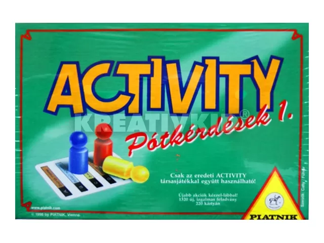 Új köntösben élvezheted a megszokott játékokat. De azt ne felejtsük el, az ACTIVITY Pótkérdések 1. készlet csupán a feladatokat tartalmazza, s csak az eredeti ACTIVITY Original, vagy az ACTIVITY Kompakt társasjátékkal együtt játszható.