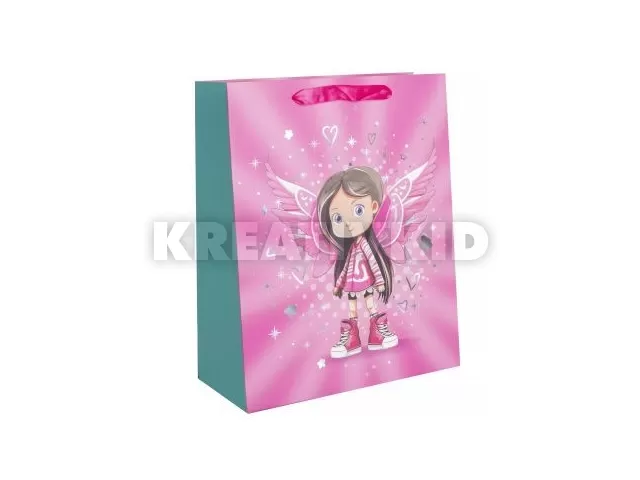 Ajándéktasak angyali lány mintával, 18 x 23 - Rózsaszín