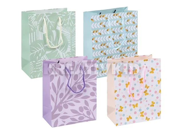 Ajándéktáska, zsinórfüles, 18x23x10 cm, DONAU "Home", vegyes minta