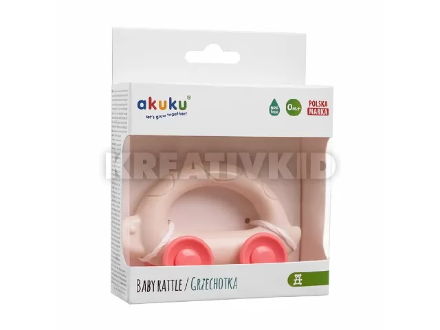 A legfiatalabb gyerekeknek készült csörgõ barátságos süni formával. Könnyû és könnyen tartható a gyermek kis kezében. A termék tartós és biztonságos anyagokból készült. Nincsenek éles szélei. Csillapítja a fogfájást, mivel az egyenetlen szerkezetû elasztikus anyag tökéletesen masszírozza a baba ínyét.