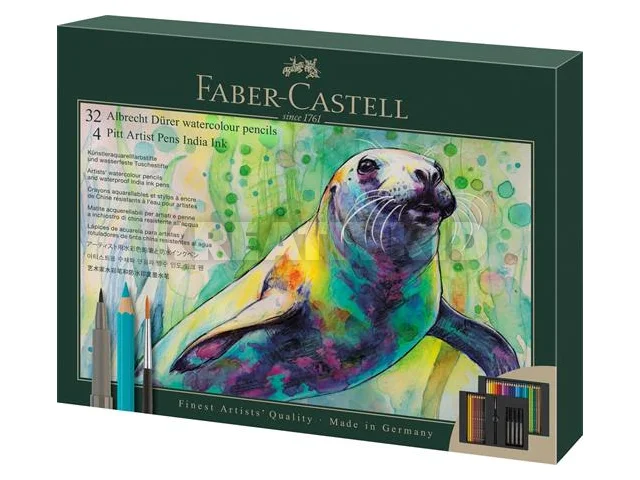 Akvarell ceruza készlet, ecsettel, FABER-CASTELL "Albrecht Dürer & Pitt Artist Pen", 37 db-os szett