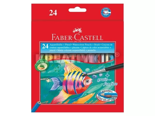 Akvarell ceruza készlet, hatszögletű, ecsettel, FABER-CASTELL, 24 különböző szín