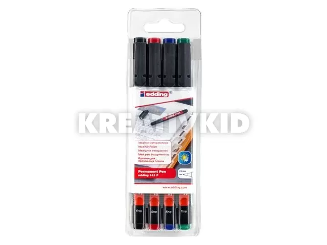 Alkoholos marker készlet, OHP, 0,6 mm, EDDING "141 F", 4 különböző szín