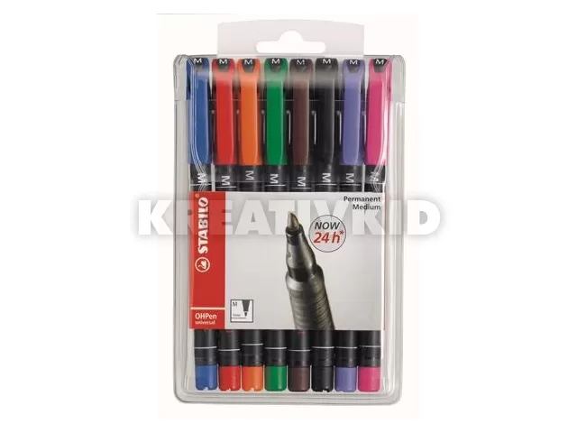 Alkoholos marker, 1 mm, STABILO "OHPen M", 8 különböző szín