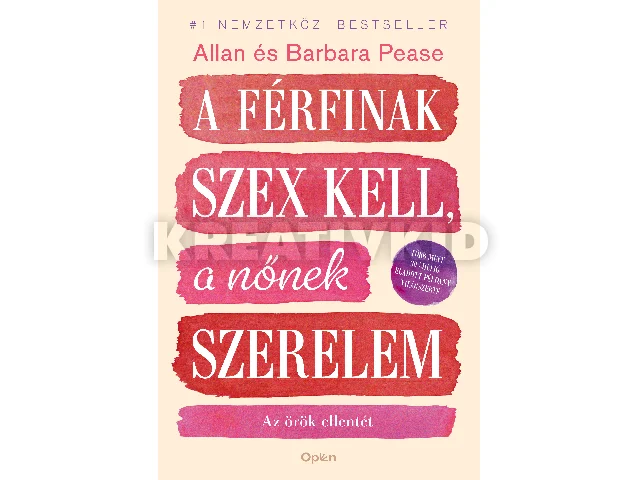 Vajon egyetérthet-e valaha is egymással a férfi és a nő a szex és a szerelem terén? Hogyan válhat egy kapcsolat kölcsönösen gyümölcsözővé, ha a férfi rögtön ágyba akar bújni, a nő pedig máris menyasszonyi ruhát öltene? Ebben a gyakorlatias, humoros és praktikus könyvben a párkapcsolati szakértők, Allan és Barbara Pease megvizsgálják, hogyan hangolódhat sikeresebben egymás igényeire a férfi és a nő. A tudományos tényekkel és naprakész kutatási eredményekkel felvértezett mellbevágó kötet rendkívül szórakoztató olvasmány, melynek segítségével minden olvasó rátalálhat a boldogságra élete párja mellett.Ha a lehető legtöbbet akarod kihozni a kapcsolatodból, vagy szingli vagy, és még mindig a nagy Ő-t keresed, feltétlenül olvasd el ezt a könyvet.