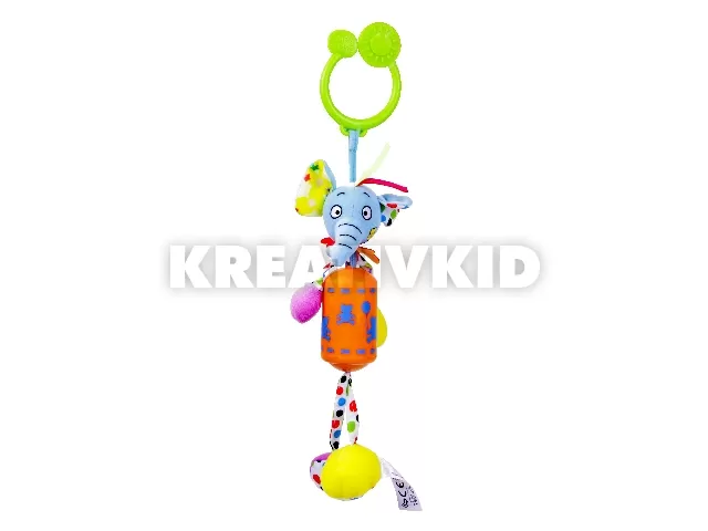 Színes lógó kisállat, csörgő pocakkal! Az Állatos csörgő bébijáték egy textilből és műanyagból készült vidám elefánt, ami mozgásra ingerli a babát. A játék rázás hatására kellemes csörgő-zörgő hangot ad ki magából, csak akaszd fel a babaágyra, babakocsira, bárhova, ahol a baba eléri. Az Állatos csörgő bébijáték élénk színű, változatos tapintású textilekből készült. Méret: 36 cm.
