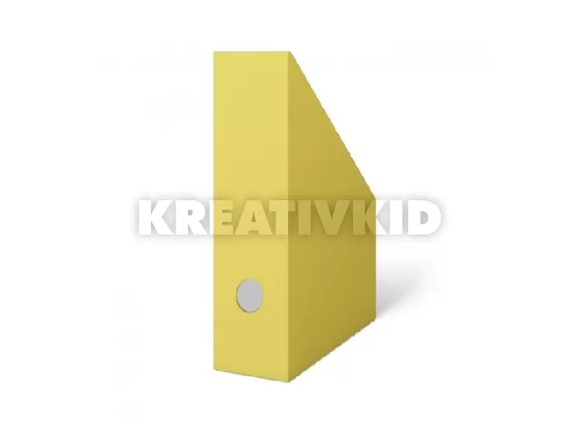 A4-es méretű iratok tárolásához készült álló irattartó karton, 7 cm-es gerincvastagsággal, összehajtható, sárga színben.
