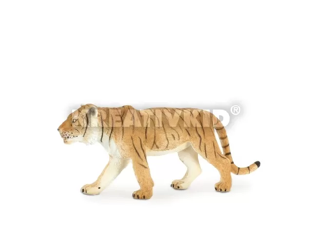 Szerezd be ennek a csodálatos, méltóságteljes állatnak a kicsinyített mását, mely olyan akárcsak a valóságban! Szőrzetének alapszíne narancsvörös, hasa fehér. Fekete csíkjai a fejétől a farka végéig megtalálhatók.