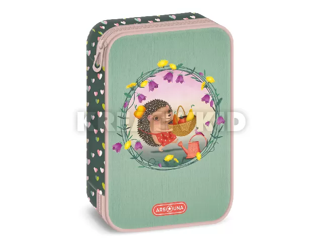 Többszintes, töltetlen, cipzáras tolltartó. Belül textillel bevont merev lapokkal, gumis kialakítással 30 ceruza számára az írószerek tárolásához és egy cipzáras belső zsebbel.