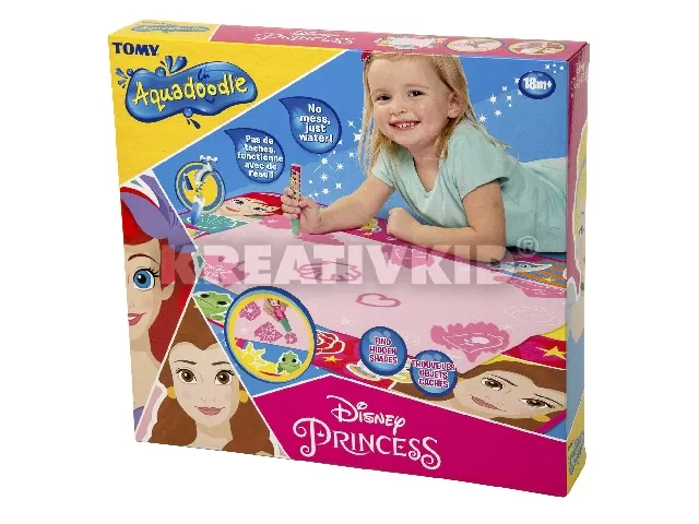 A Tomy Aquadoodle szőnyegen, vízzel megtöltött speciális tollal rajzolhatnak és írhatnak a kicsik. A víz hatására, a lap színe megváltozik.