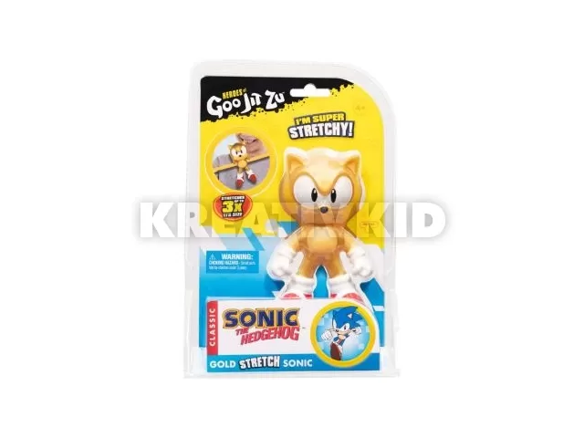 Megérkezett a Goo Jit Zu Arany Sonic nyújtható akciófigura, ami nemcsak azért különleges, mert zselés teste összenyomható, hanem azért is, mert nyújtható és csavarható végtagjainak köszönhetően képes akár mérete háromszorosára is megnyúlni.