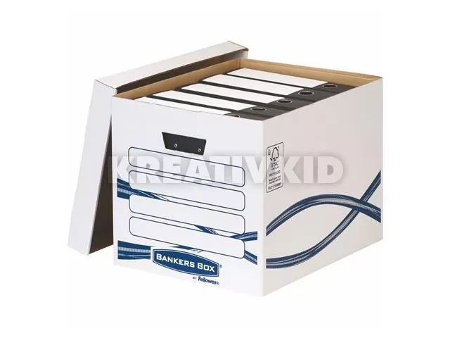 Archiválókonténer, karton, FELLOWES, "Bankers Box Basic Tall", kék-fehér