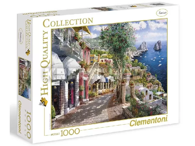 Szemléletes utcakép Capri szigetéről az 1000 darabos kirakón, a Clementoni kínálatából.