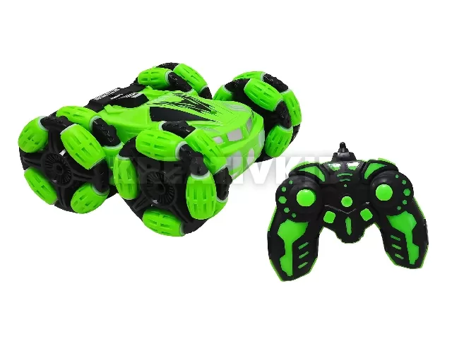 360°-ban pörgő, távirányítós autó. A legtöbb távirányítós játékot gyorsan meg lehet unni, lassan gurulnak előre-hátra, elakadnak, felborulnak… Ezen a nagy gumikerekekkel rendelkező versenyautón viszont nem fognak ki az elemek, speciális felfüggesztésének köszönhetően akkor is tovább folytatja a száguldást, ha fejre áll, bírja az ütközéseket, a szőnyegek peremét pedig ugratónak használja. Speciális kialakításának köszönhetően gyorsan képes 360°-ban pörögni és irányt váltani - a távirányító egyik gombjának megnyomása után látványos mutatványba kezd. Az átfordulós autó beépített akkumulátorát a mellékelt kábellel töltheted fel, míg a távirányító elemekkel működik 2 db 1,5 V "AA", melyet a csomag nem tartalmaz.