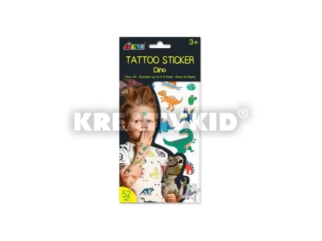Az Avenir 52 db-os lemosható tetoválás csomagjával az őshüllő-rajongó kisgyerekek magukon viselhetik a dinoszauruszokat. A tetoválások 3-5 napig maradnak rajta a bőrön, de eltávolításuk korábban is lehetséges: vízzel és szappannal könnyen lemoshatók.