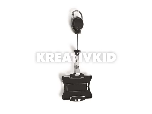 Azonosítókártya-tartó, kihúzható, karabineres, DURABLE "Extra strong", kártyatartóval, fekete